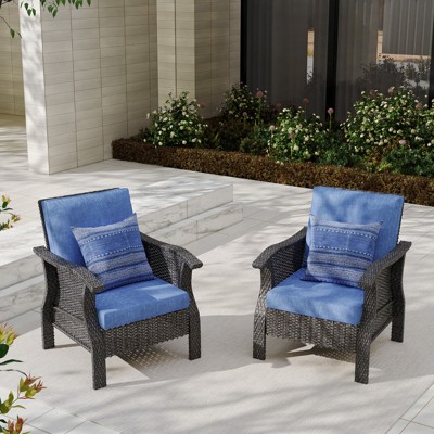 SUGOLD Outdoor Wicker Bar Stools Set of 2, Patio Rattan Counter Height Chairs with Cushions, Armrest and Footrest