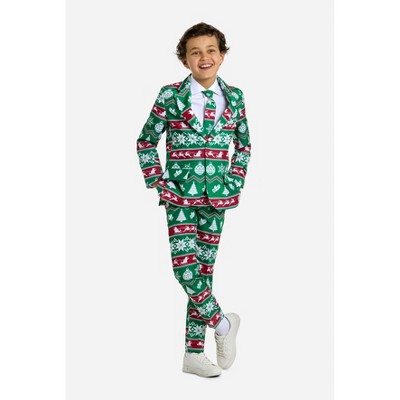 Suitmeister Men's Christmas Suit - Festive Ugly X- Mas Holiday Nordic Print - Red & Green  - Size Medium - 1 of 4