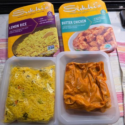 I bought this product and discovered there was way too little sauce in the chicken package. The butter chicken was coated with sauce nicely but there was very little butter chicken sauce flavor remaining to barely tint the rice red.