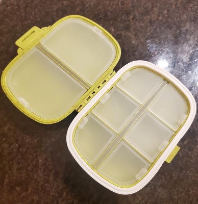 Great travel pill case to carry around. It's very sturdy and well made. I've dropped the case a few times and the pills don't spill out like other cases I brought in the past.