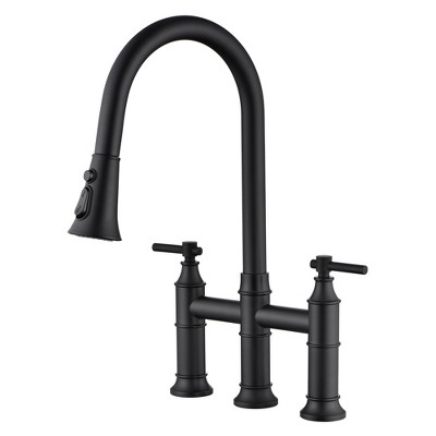 SUMERAIN 2 Hole Kitchen Sink Faucet with Pull Out Sprayer, Side Single Handle Black Finish