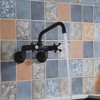 Sumerain Matte Black Wall Mount Kitchen Sink Faucet, 3" to 9" Adjustable Spread with Two Handle