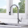 Switch between spray(tough cleaning) and stream (gentle rinsing) via spray head button. The braided stainless steel hose on this pull down kitchen faucet provides 360° sink coverage. - 2.Premium Material Construction