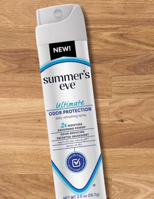- Summer’s Eve Feminine Spray for Odor Protection has two times the moisture absorbing power** for lasting freshness; **vs. Summer’s Eve sprays