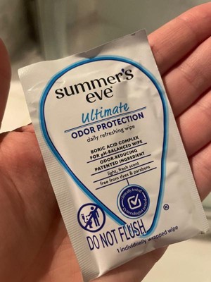 [This review was collected as part of a promotion.] These Summer's Eve ultimate odor protection refreshing wipes are perfect for anyone's busy lifestyle. They come individually wrapped and fit nicely in any handbag, gym bag or even your pocket. They are great for freshening up after a workout or after a long day of work. Great for balancing ph levels with boric acid. They have a light fresh scent and are non irritating. They are a good value and a good add to any girls collection to stay fresh and clean.