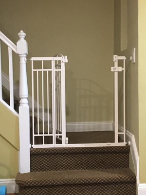 Don't bother, find a better product, especially for the cost! I purchased mine a couple of months ago and it is flimsy, doesn't glide nicely at all. It is so difficult to open and close it that it has been ripped out of the wall already even with using plugs as you have to shake the gate a bit to have it glide back and forth. Very unimpressed and this certainly wouldn't be suitable on a set of stairs!