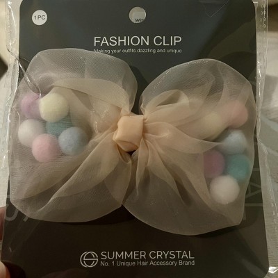 Summer Crystal - Tulle Bow with Pompoms Hair Clip - 1 Pack