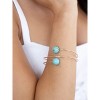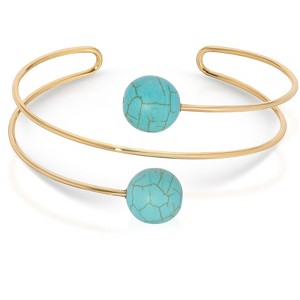 The Summer Escape Turquoise Cuff features 18k gold plating and a sleek wire design capped with reconstituted turquoise at each end, offering a blend of elegance and natural beauty for a chic summer accessory.