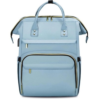- Fashion Blue & Water Repellent Design Backpack: womens Light Blue laptop backpacks have exquisite gold-plated zippers and fashion stitch texture. Size Detail: 17” H x 12.6” L x 7.8” W. Weight 1.76 lbs and easy to carry. The exterior material of the VANKEAN stylish lightweight backpack is scratch-resistant nylon with a fully lined tear-resistant custom polyester interior.