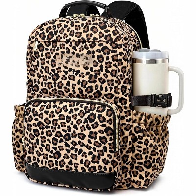 Summit Adventure 15.6 Inch Laptop Backpack for Women - Large Cup Pouch, Waterproof Travel & Work Bag for College & Business Leopard Print 17 Inch