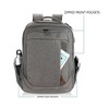 * The laptop backpack is made from eco-friendly poly fabric with a water-repellent feature, offering durability.