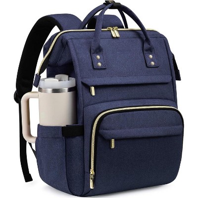 Summit Adventure Waterproof Laptop Backpack for Women - 15.6 Inch Work Bag with Large Cup Pocket for School & Travel. Dark-blue 15.6INCH