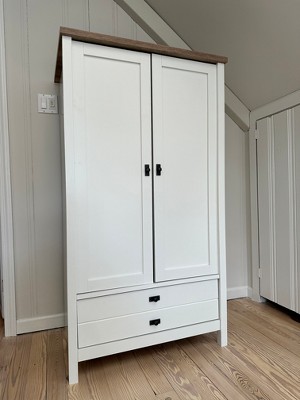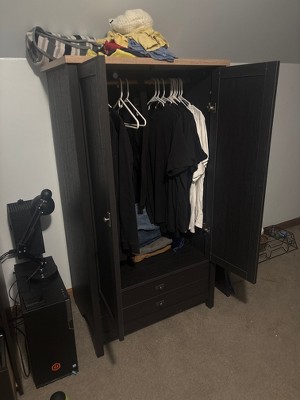 I needed a small armoire for a very small BR at my vacation home. This fit the bill perfectly! Even though it is a manufactured wood product, the price is right and it came together quickly! And there was not one mistake in directions or part/screws labeling!
