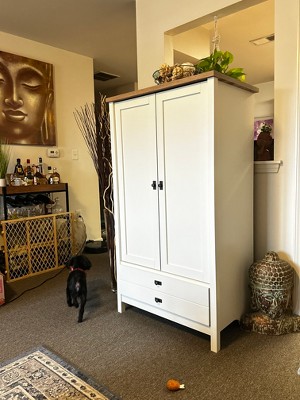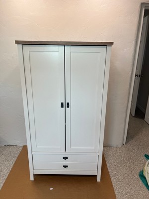 The armoire is appreciated for its attractive design and sturdy construction, making it a great addition to various spaces. Guests find the assembly process manageable, with clear instructions that often include helpful tips. However, some have experienced issues with alignment and minor damages upon arrival. Overall, it serves well for extra storage and complements existing furniture beautifully, making it a practical choice for any room.