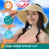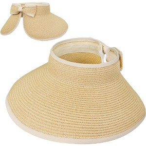 - WOMENS SUN VISOR STRAW HAT: Wide brim straw ponytail visor hat for women provides sun protection all over your face and neck. Summer straw beach hat is lightweight, breathable, comfortable for everyday wear, and great for the beach, pool, vacation, or travel. Sun hat for women is easy to pack, roll up, packable, and foldable for storage on the go.