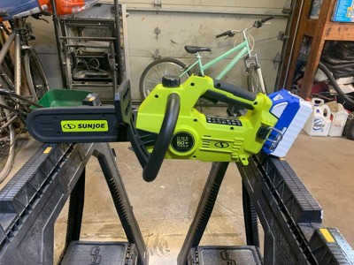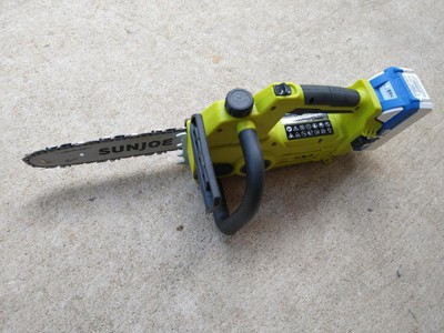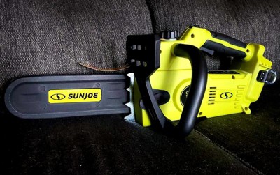 Review of a Sun Joe cordless Chain Saw with battery and charger.