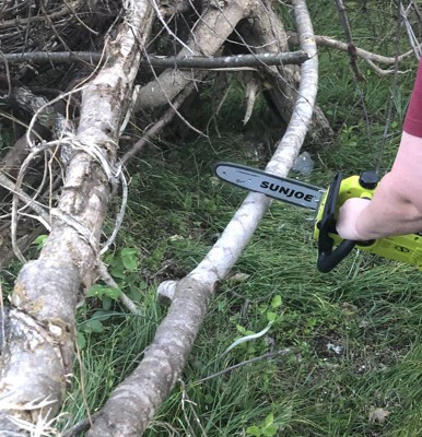 [This review was collected as part of a promotion.] This is a very nice chainsaw! I love that it’s battery operated and now I plan on buying more sunjoe products to go with the battery! We live in a wooded area in Tennessee so I was able to cut a bunch of limbs that would get in my mowing way. I also have a mature weeping cherry tree that this works perfect on to trim so of the limbs up on. I wouldn’t recommend this for big trees but perfect for what I need!