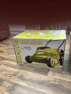 Sun Joe Cordless, Brushless Lawn Mower Kit, Rear Grass Bag, Green, MJ24C-14-XR