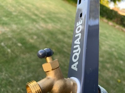 [This review was collected as part of a promotion.] I have a hose from Aqua Joe, and I am quite pleased with it, so I was happy to put the Garden Hose Stand W/ Brass Faucet to the test. And so far, I am delighted. The stand came in great condition, well packaged and safely sent. There were no dents or dings, and putting it together was a breeze. There are only three parts, the two parts of the stand itself, which telescopes together, snapping into one another with a depressed bulb, and the half circle hose holder, than slots into the pole, with a bolt securing them together. It was assembled and ready to be installed in less than 5 minutes. This isn’t my first hose holder with a faucet, and I’ve been very disappointed in the past. But not so with Aqua Joe…the faucet fittings on this are heavy duty and perfectly machined. Brass and heavy, my hoses attached to both sides easily, and didn’t leak even though I only hand tightened them. I was absolutely blown away at how well the fittings were made, and how reliably the faucet functioned. I couldn’t be happier, seriously. The stake is thick, and the pedal you push it down with is ample and strong, and I could drive the spike very deep and securely. I only have a 50 foot hose on the holder - the Aqua Joe says it can hold one up to a 125ft…and I believe it - and it holds mine easily and without tipping or tilting. With a clean, modular look, the holder is demure and unobtrusive, and I am very pleased with it. I heartily recommend this product…and if you’re like me and have had bad versions of this from other brands, don’t be discouraged, the Aqua Joe is well made, heavy duty, and doesn’t leak. It is an awesome product!