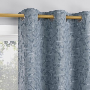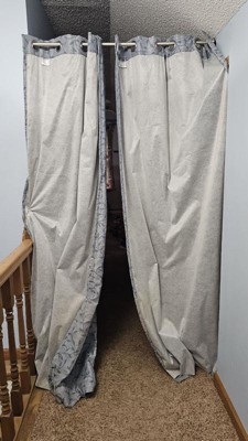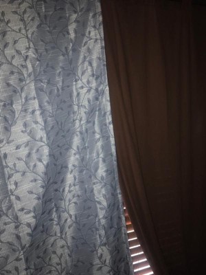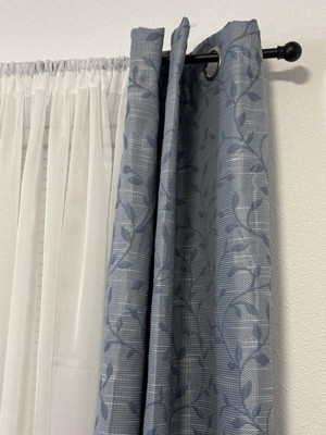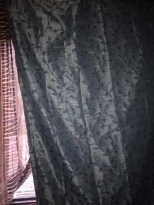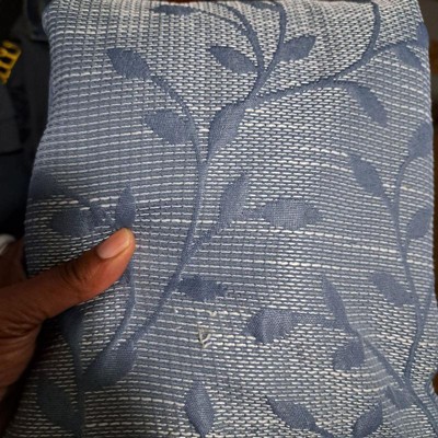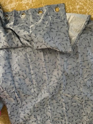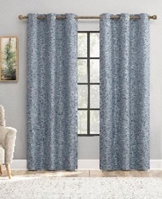 Featuring a leaf silhouette, Sun Zero Brinlee Curtain Panels adds an organic touch to any living space. Equipped with grommets for easy hanging on standard curtain rods up to 1.5" in diameter. Sun Zero Total Blackout Thermal Lining is laboratory tested to block out 100% of light, reduce outside noise by up to 40%, and decrease energy lost through your windows by up to 40%. Comfort is optimized with thermal properties that help keep summer heat and winter chill out of your home. Hang in your entertainment room to eliminate screen glare and reduce distracting outside noise, or in your bedroom for enhanced privacy and a sounder, more uninterrupted sleep. Mount rods at least 2" above the window for maximum light blocking. Mount rods at least 2" above the window for maximum light blocking. Sold as individual panels measuring 40" width by 63" length in color blue denim. Measure carefully before selecting your desired size and quantity. Rod not included. Machine wash cold on gentle cycle. Use non-chlorine bleach when needed. Tumble dry on low heat, using a cool iron as needed.