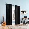 Sun Zero Doucet Curtain Panels offer energy efficiency and elevated design with a rod pocket for easy hanging on a standard curtain rod up to 1.5" in diameter. Sun Zero Thermal Blackout Curtains are laboratory tested to block out most light, offer outside noise reduction by up to 25%, and decrease energy lost through your windows by up to 40%. Comfort is optimized with thermal properties that help keep summer heat and winter chill out of your home. Hang in your living room for enhanced privacy, or in your bedroom for a sounder, more uninterrupted sleep. Mount rods at least 2" above the window for maximum light blocking. Sold as individual panels measuring 40" width by 63" length in color black. Measure carefully before selecting your desired size and quantity. Rod not included. Machine wash cold on gentle cycle. Use non-chlorine bleach when needed. Tumble dry on low heat, using a cool iron as needed.