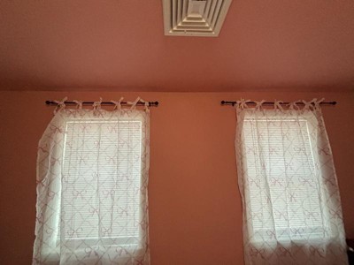 [This review was collected as part of a promotion.] These were really pretty easy to put on the window rod, easy to Install, the fabric reminds me of a light fabric that’s kind of see-through, but not really you can see the light go through the curtains. I love the design. I love the pink ribbons on the design, and I think the most prettiest feature of the curtains are the ribbons on the top where you put the curtain rod through. I think this is a really pretty curtain. It matches my room really well since my room is like a pinkish coral color. Thank you to sunzero and Influenster for the beautiful curtains! This is 100% my opinion. #complimentary