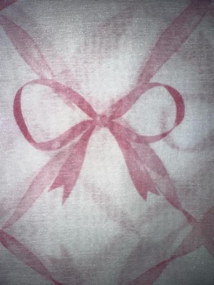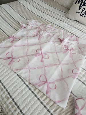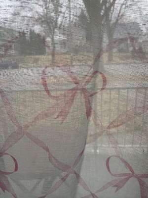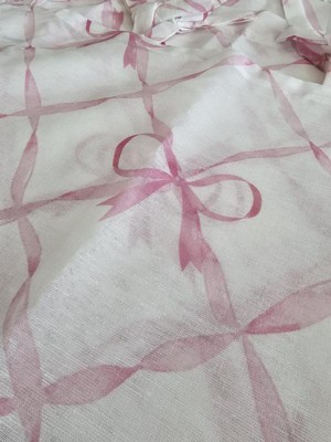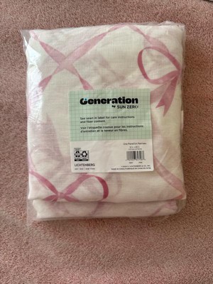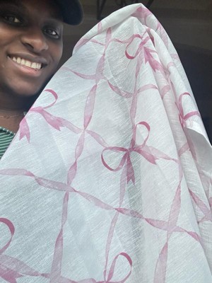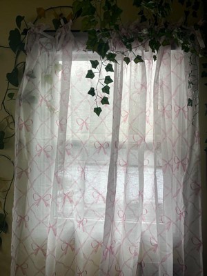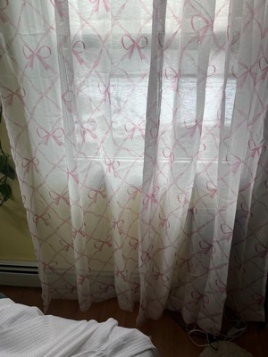 [This review was collected as part of a promotion.] Sun Zero Romy Lattice Bow Sheer Tie Top Curtain Panel ***Requires easy slide-through installation on standard curtain rod *** (not included) Sheer tie top curtain panel featuring lattice ribbon and bows print, pink, 50" W x 84"L (each panel)