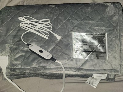 Sunbeam 50" x 60" Quilted Nordic Velvet Reverse Shearling Heated Throw Electric Blanket Dove Gray: Lightweight, Machine Washable