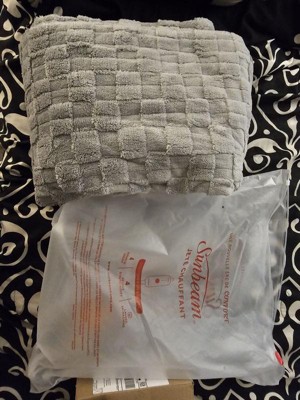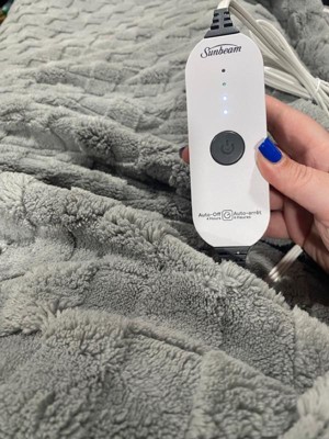 Sunbeam Electric Jacquard Faux Shearling Heated Throw snuggles you in warmth and beats the cold chills. Experience its rich and ultra cozy Jacquard Faux Shearling fabric to keep you toasty and comfortable while you unwind. This 50 in. x 60 in. electric blanket makes a great addition while sitting on the couch, lying in bed or settling into your favorite chair and the stylish light marble gray color makes a great addition to any decor.