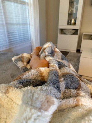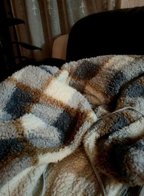 [This review was collected as part of a promotion.] I start using the grey-brown plaid Sunbeamhome microplush faux shearling shrow not expecting much, but it ended up becoming the blanket everyone in my family tries to steal. The warmth is steady and soothing, and it reaches a comfortable temperature really quickly. The foot pocket is such a clever touch, almost like a built-in sleeping bag for your feet. What I love most is how practical it is. The controller is attached directly to the throw, so you don't have to search for it in the dark, and the cord is long enough to plug it in without rearranging the room. The 4-hour auto-shutoff has already saved me more than once when my daughter falls asleep with it. She gets cold easily in winter, and this throw keeps her warm without overheating. One small downside: the inside shearling texture wore down faster than I hoped, and a bit of pilling appeared. It's a cosmetic issue only the heating works perfectly and the comfort is still amazing. Overall, this plaid throw is such a good find for the price: cozy, lightweight, and perfect for chilly evenings.