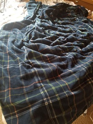 [This review was collected as part of a promotion.] This blanket is “family size” and about the width of a twin size bed. Will be really nice watching tv in our cold basement in spring and winter when it is damp and cold. Worked well and easy to use. Plug in and pick your setting, choose from 4 levels. Perfect for a couple people snuggling on the couch. The plaid pattern is really nice and compliments a lot of decor. The blanket is a little thin, but with the electric heat, super warm.