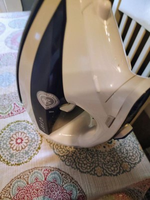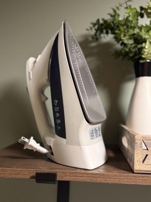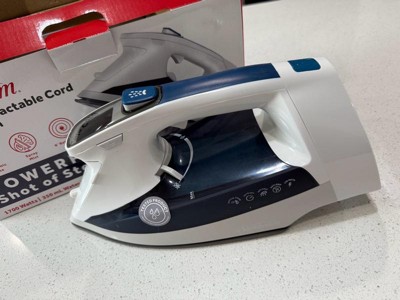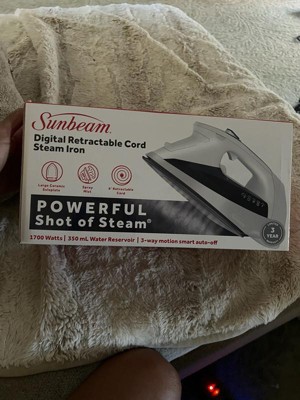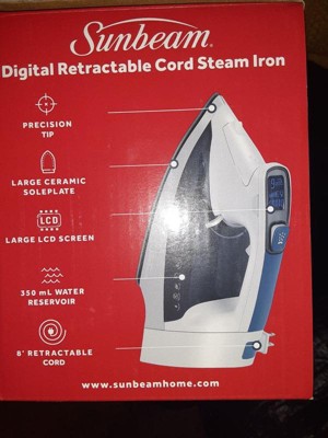 [This review was collected as part of a promotion.] This Sunbeam iron is great! It’s got a nice size reservoir that holds a good bit of water, and it steams well. I really like the digital panel. And I love that the cord retracts- makes storage easier!