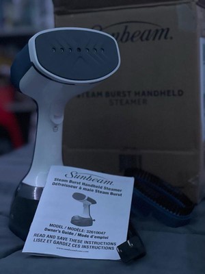A: Hello, thank you for your inquiry. The Sunbeam Steam Burst Handheld Steamer water reservoir that holds approximately 230 mL. If you have any more questions or require our assistance, please reach out to us via our official Sunbeam website, and we will be happy to assist you. We’re available Mon.-Fri. 9 am -5 pm Eastern Time. Thank you! Sunbeam Consumer Care