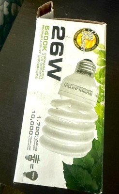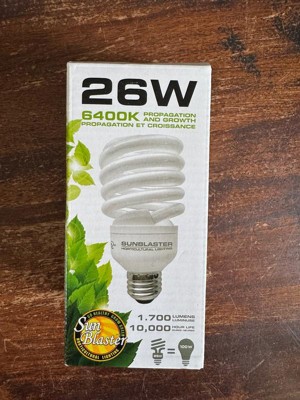 The 6400K spectrum allows the light bulb to replicate natural sunlight, which encourages plant growth and propagation. The SunBlaster 26-Watt CFL Light Bulb offers full-spectrum lighting for residential and commercial horticultural pursuits. The grow light bulb provides healthy, energy-efficient indoor lighting to keep your houseplant collection or hydroponics system happy and healthy.