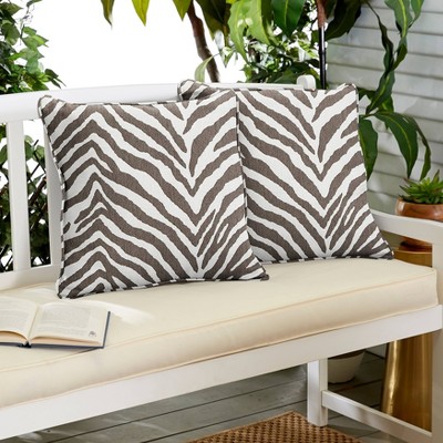 This set of two outdoor square Sunbrella pillows will offer the right amount of care and quality to any seating area. Featuring a design with chic colors, this set boasts subtle elegance to allow for versatility. These pillows are filled with 100 percent recycled fiber and sewn closed to ensure maximum support and durability during use. The exteriors are UV and fade resistant so that this lovely design doesn't lose its luster through long-term outdoor use