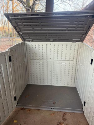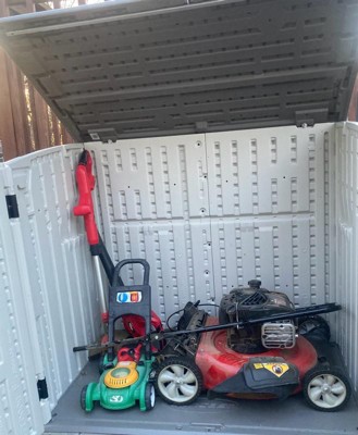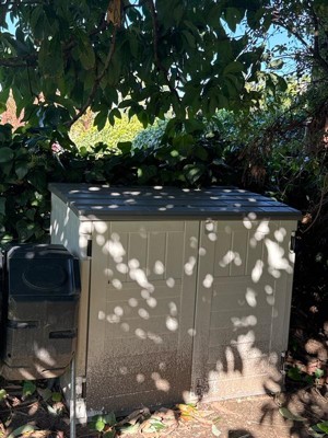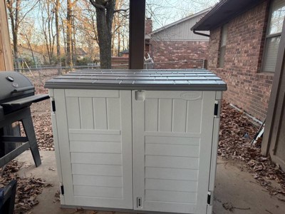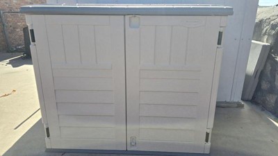 Suncast 34 Cubic Feet Capacity Horizontal Outdoor Storage Shed for Garbage Cans, Garden Accessories, Backyard, and Patio Use, Vanilla