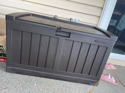 Classic design meets modern durability with this 50-gallon Deck Box with Seat from Suncast.