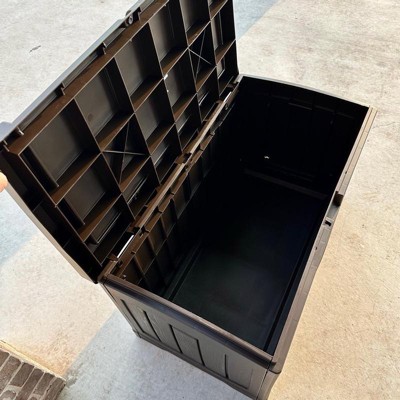 - STORE AND SIT: Reinforced lid offers unique seating and storage solution that tucks away outdoor equipment and promotes long-lasting integrity and functionality; Weight capacity: 300 pounds