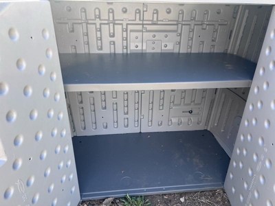 Constructed with durable materials, this unit is built to withstand the elements, while the pad-lockable doors offer enhanced security and strength (lock not included). The modern and stylish reeded design adds a touch of elegance, effortlessly complementing your outdoor environment.