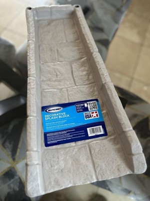 Direct rain water away form the foundation of your house with this Suncast SB24 decorative gutter downspout splash block. Help keep edgings where they need to be and prevent soil erosion. The splash block directs rain water away from foundation so that area is kept safe and dry. The downspout also prevents mud splattering on the side of your home, so your exterior can remain in pristine condition.