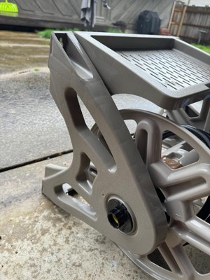 [This review was collected as part of a promotion.] This hose reel was easy to set up. It’s a lot lighter than expected but seems sturdy so far. I was unsure of the long term durability of the plastic but it’s still working and looking great after being in direct sun for the last two months I’ve had it. The reel mechanism is easy to use and smooth. Sometimes the hose does get stuck when I pull it at an angle but that could be because I haven’t mounted it yet.