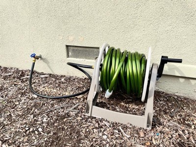 [This review was collected as part of a promotion.] This garden hose reel is great. We haven't put a hose on this one yet but we already have one like this and it's fantastic. It rolls up easily, keeps your hose from tangling, and it's easy to install. I live where we get severe weather and they hold up well to the elements. I recommend this highly.