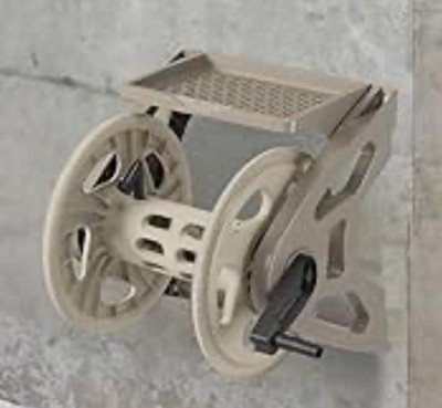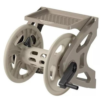 Suncast Handler 200 Foot Resin Wall Mounted Outdoor Garden Hose Reel, Taupe