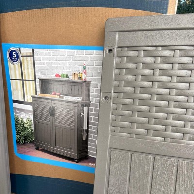 Suncast Patio Storage & Prep Station Stoney: Resin Outdoor Serving Cart with Galvanized Steel Hardware