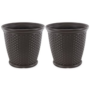 Suncast Sonora 22 Inch Resin Wicker Decorative Garden Planter, Java (2 Pack)