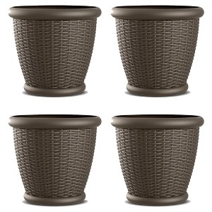 Suncast Willow 18-Inch Diameter Durable and Lightweight Decorative Wicker Patio Planter Pot with Drillable Drain Holes, Java (4 Pack)