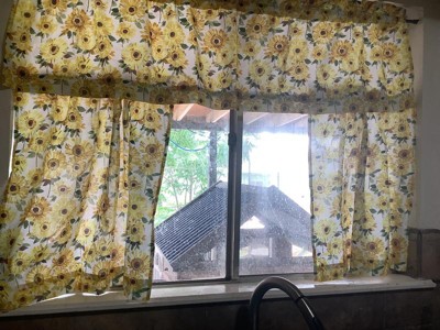 [This review was collected as part of a promotion.] I recently got this cute sunflower kitchen curtains and I love how it looks . The design is cute and makes my kitchen looks more vibrant. I get a lot of compliments on it when people come over to my house . Perfect for the summer .
