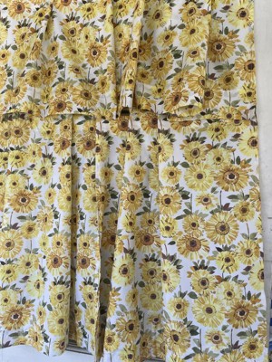 24"x54" Sunflower Print Semi Sheer Rod Pocket Kitchen Curtain Valance and Tiers Set Yellow - No. 918: Floral Botanical Design