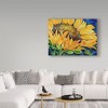 This ready to hang, gallery-wrapped art piece features a sunflower pointing up into the sky.Art has always been a passion of mine. I wanted to know as much about art as I could possibly learn. I still strive to learn something new every day. It takes practice and patience to be a full time artist and I am finally able to devote one hundred percent of my professional life to my studio work. After many years working in and around art, making a living as an advertising designer, art teacher, photographic artisan and many other niches, I finally opened my art studio to the dedication of purely fine art. I am a trained artist, receiving a BFA and a MFA in the seventies and eighties, respectively.Giclee (jee-clay) is an advanced printmaking process for creating high quality fine art reproductions. The attainable excellence that Giclee printmaking affords makes the reproduction virtually indistinguishable from the original piece. The result is wide acceptance of Giclee by galleries, museums, and private collectors. Gallery wrap is a method of stretching an artist's canvas so that the canvas wraps around the sides and is secured a hidden, wooden frame. This method of stretching and preparing a canvas allows for a frameless presentation of the finished painting.