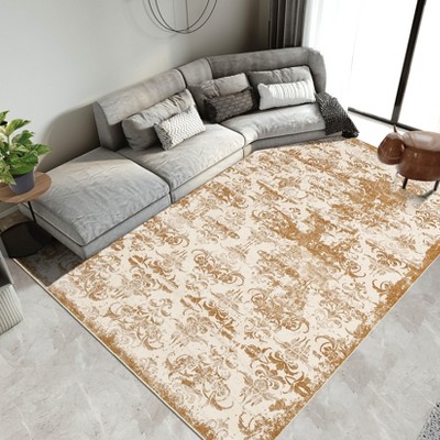 Sunflowers Area Rugs, Washable 8'x10' Khaki Oil Painting Artwork Boho Floral Botanical?Non Slip Stain Resistant Carpet